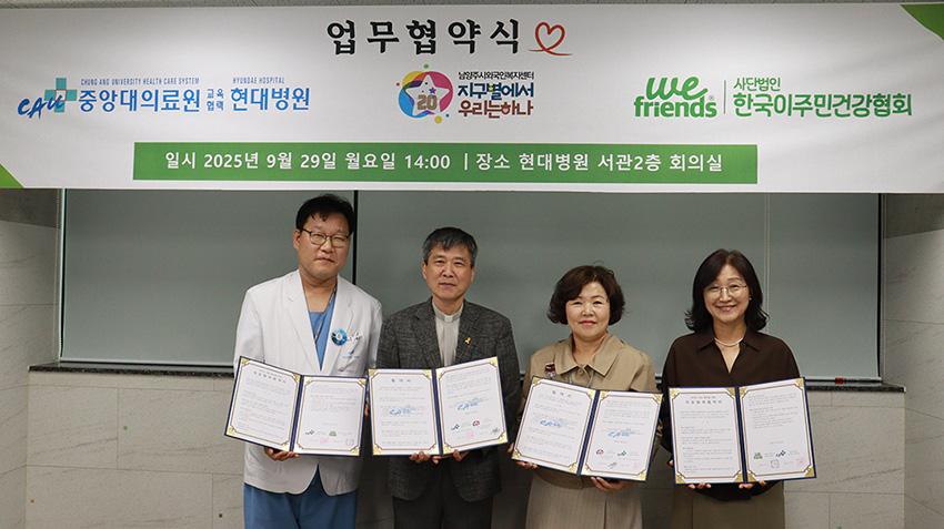 μνλ μ¦λ 9μ 29μΌ, μ€μλμλ£μ κ΅μ‘νλ ₯ νλλ³μκ³Ό WeFriends Aid νλ ₯ μλ£κΈ°κ΄ νμ½μμ μ§ννμ΅λλ€. μ΄λ² νμ½μ μ΄μ£Όλ―Όκ³Ό κ·Έ κ°μ‘±μκ² μλ£ μ§μμ΄ νμνλ€λ 곡κ°λλ₯Ό λ°νμΌλ‘ μ΄λ£¨μ΄μ‘μΌλ©°, λ€μν μΈμ΄ ν΅μ μ§μμ ν΅ν΄ λ λ§μ μ΄μ£Όλ―Όμ΄ μ λ μΉλ£λ°κ³ μΆμ μ§μ λμ΄λ λ° κΈ°μ¬ν κ²μ λλ€. μνλ μ¦λ νλλ³μ, λ¨μμ£ΌμμΈκ΅μΈλ³΅μ§μΌν°μ ν¨κ» λ¨μμ£Όμλ₯Ό ν¬ν¨ν κ²½κΈ° λΆλΆ μ§μ μ΄μ£Όλ―Όλ€μ΄ 건κ°νκ² μνν μ μλλ‘ μ§μμ μΈ νλ ₯μ μ΄μ΄κ°κ² μ΅λλ€.